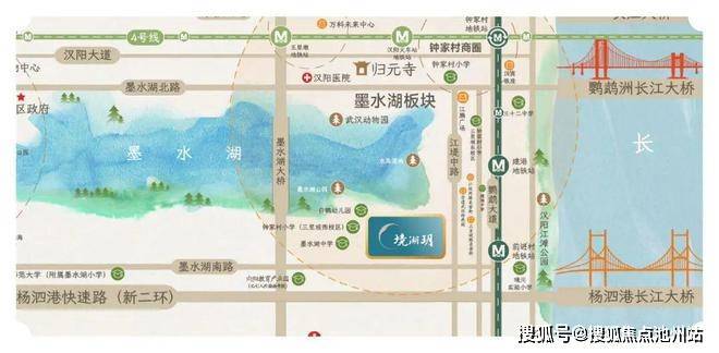 境湖玥位于汉阳区江堤中路与墨水湖南路交汇处,同时占据了2.5环内、二环旁的核心地段。