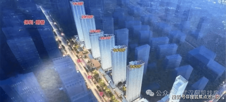 保利琅誉即保利城四期一共6栋房子分为AB两个区—-B区北片项目,共四栋住宅楼,其中1#38F,2#32F,3#25F,4#31F,2、3、4#都有架空层。保利琅誉一共360户,车位配比1:1.09。A区南片有2栋 住宅和商业5#32F和6#32F