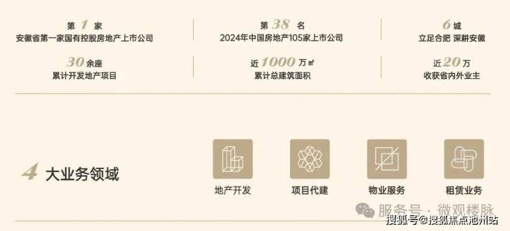 合肥城建,作为安徽省第一家国有控股房地产上市公司,是国家一级房地产开发企业。源自合肥,深耕本土,始终“以城市建设为己任”,布局6座城市,累计开发36个经典项目,位居2024中国房地产105家上市公司TOP38。