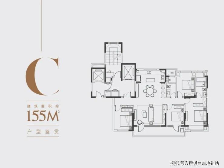 1#、2#楼为18F,3#楼为17F小高,为两梯两户,户型建面均为155㎡,并且也为项目的主力户型。