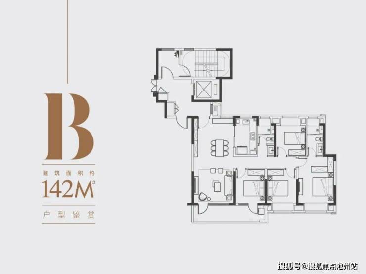 其中,9#楼为26F高层,两梯四户,01单元户型建面约142㎡,02/03/04单元户型建面约127㎡。