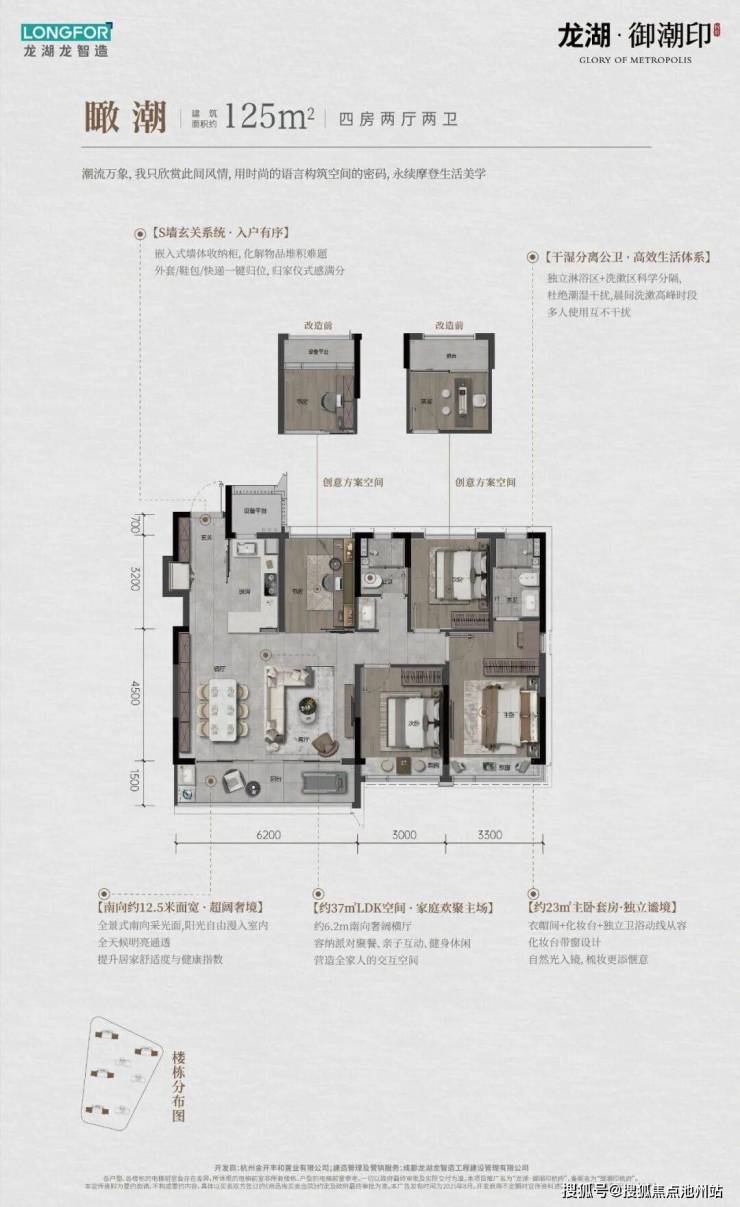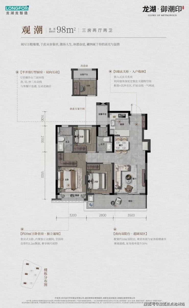 龙湖御潮印占地约2.5万方,打造纯粹的7幢高层,错落排布出约494户住宅社区。