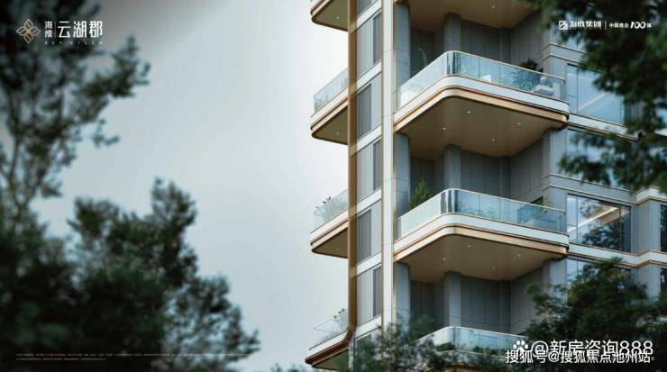 海成云湖郡通过弧形线条的几何美学与精工细作,香槟金、月影白的错落搭配,0.31的窗地比,淡化棱角,提升采光面,使整个建筑看起来柔和温润,更具精致和奢华质感,很有艺术感和辨识度。