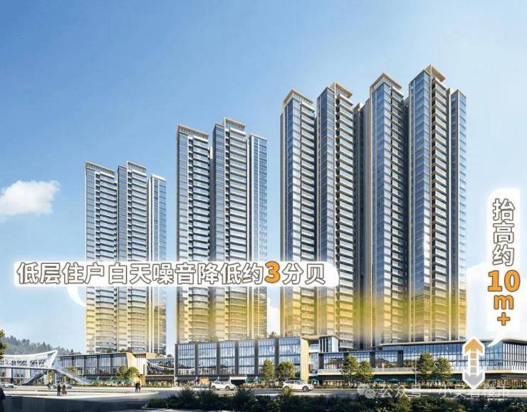 星河便以商业配套为首层,将全盘抬高超过10米。经过一轮调整,星河·臻华府的2楼与普通楼盘6楼等高,开创大道的车水马龙,都在星河·臻华府的脚下匍匐。