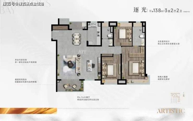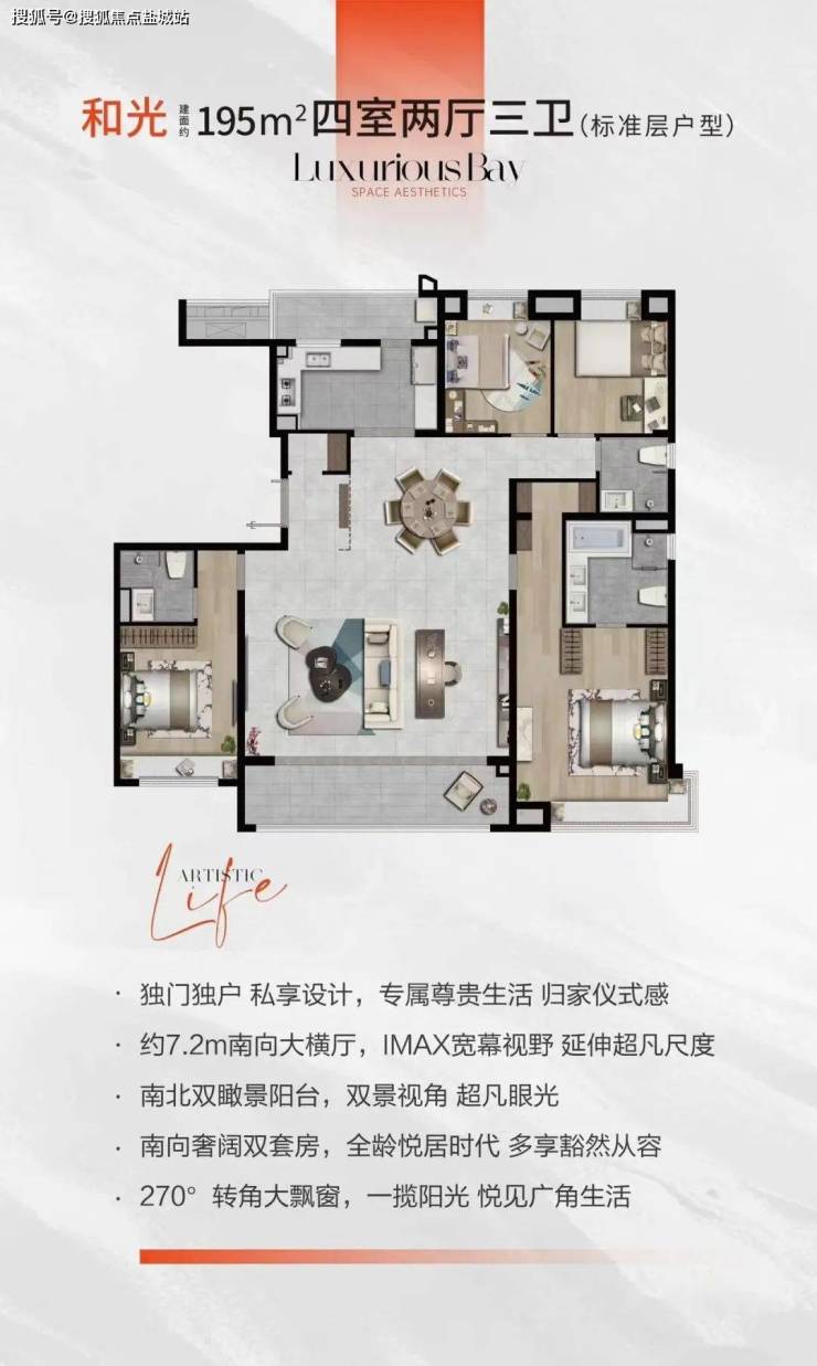 以7.6m大横厅,深U型厨房以及奢阔休闲阳台,彰显高阶气度与格局,独立入户的设计互不打扰,静享私密,南向大横厅,让阳光、风景与生活常伴。再次以奢阔美学艺术生活,敬献金山大人物。