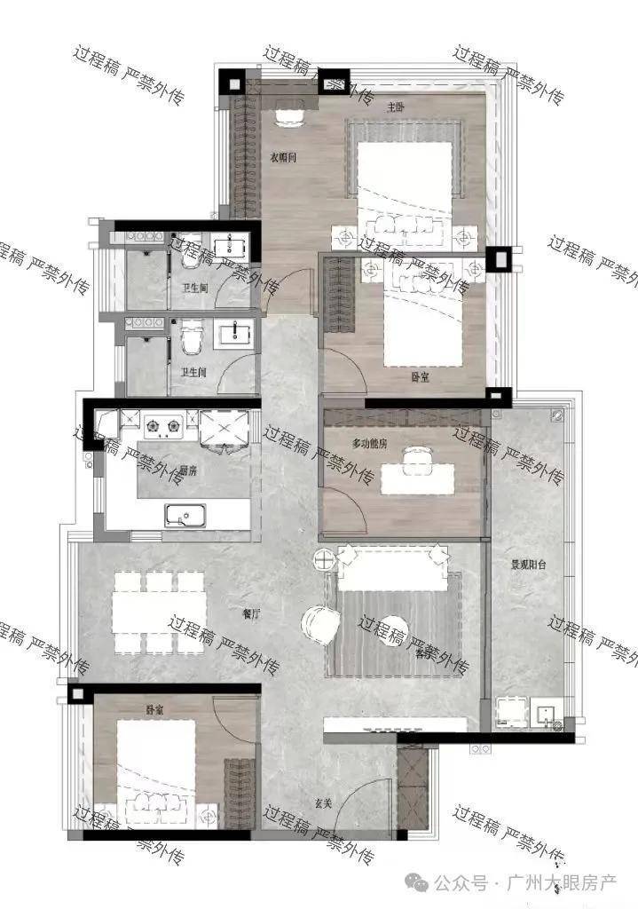 产品上,户型将实现3个“0”:0牺牲四房空间、0浪费连片体系化收纳,0遮挡主卧公园舱观景。