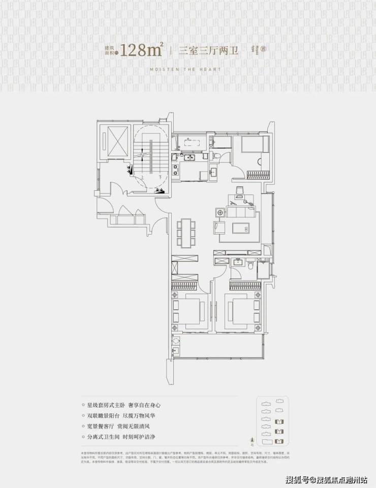 建筑面积约106㎡户型,专为都市白领设计,酒店式套房主卧、双联瞰景阳台、社交式大通厅,一方朴实的空间,是浮躁世界里为自己预留的心岛。