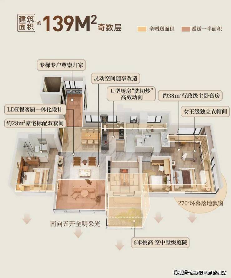 更值得一提的是,在偶数层,长辈套房直连南向约6米挑空庭院: