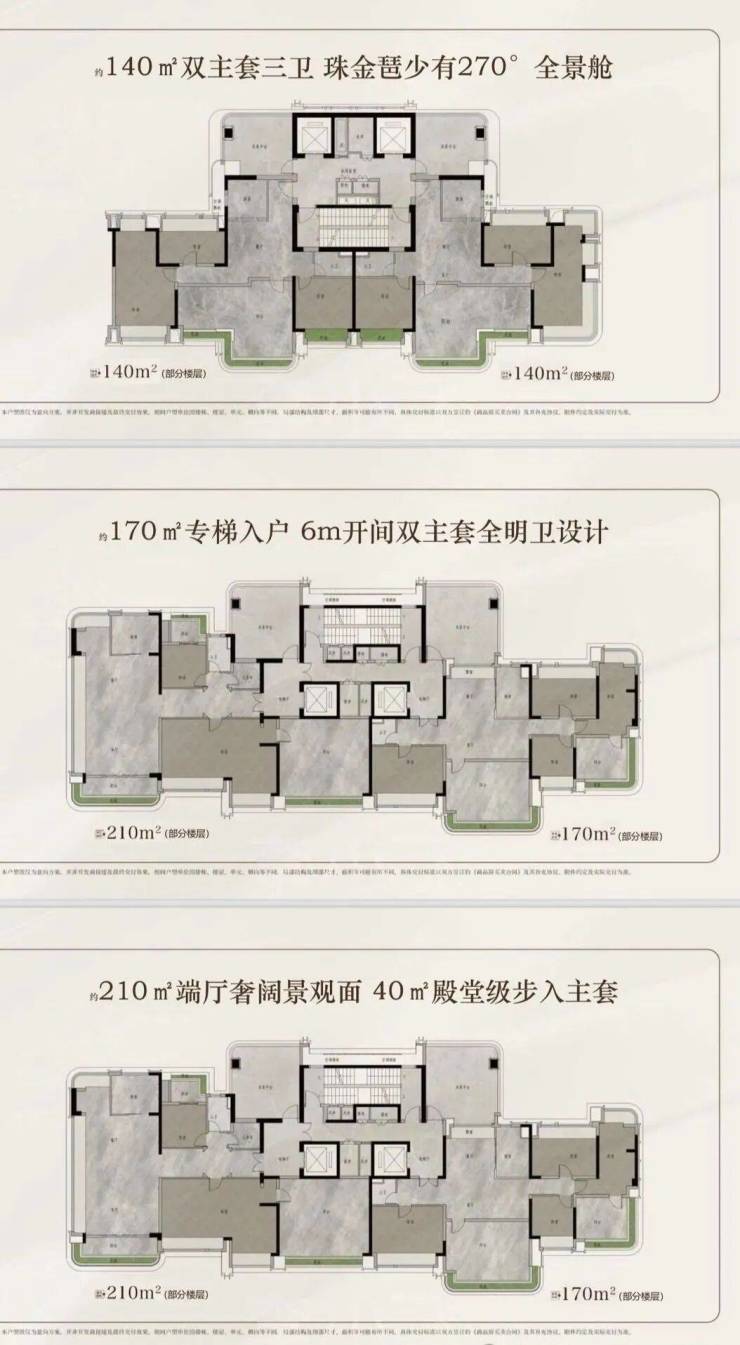【产品配置】北区2T3/3T4塔楼,南区2T2板楼,建面约120-140-170-210㎡云幕平层;