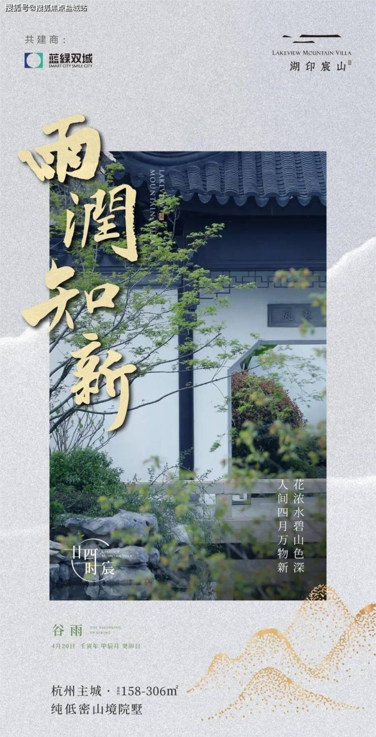项目名:湖印宸山。项目位置:杭州皋亭山4A级景区天都公园旁,总占地面积:约21.9万㎡,容积率:约0.17-0.34容积率,总建筑面积:约5.93万㎡,总户数:约267户,建筑类型:中式合院,户型面积:约180㎡—315㎡,总价800万起带两个车位,产权性质:70年住宅,交付时间:现房交付