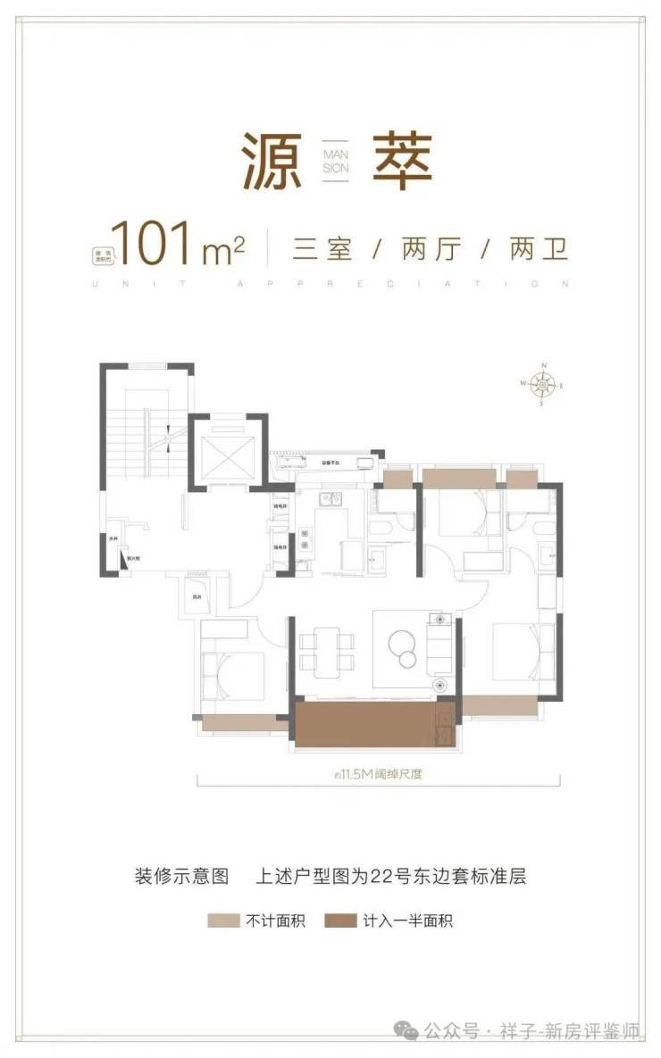 ⋄101㎡PLUS越阶三房:约5.3M阔尺横厅/约11.5M南向面宽,宽纳聚会欢愉;