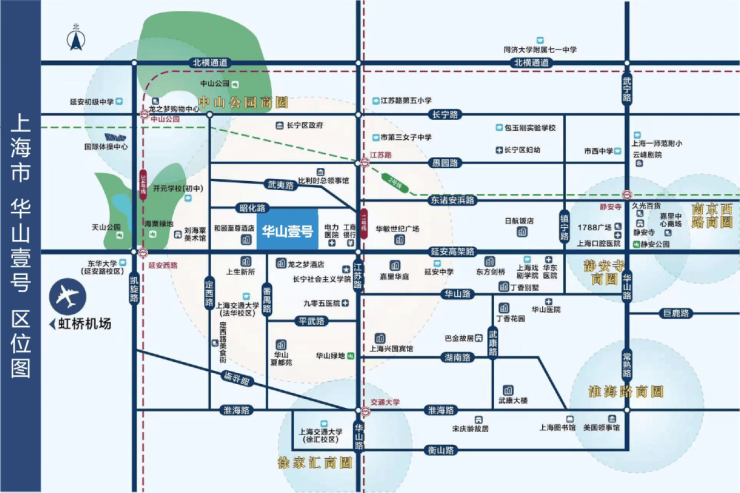 华山壹号售楼热线:400-000-0460转5555(售楼处电话)项目位于长宁区江苏路板块,地处静安,徐汇,长宁交界处,周边静安寺,南京西路,徐家汇,淮海西路商圈环绕,项目周围人问气息浓厚,有丁香花园(李鸿章故居),巴金旧居,武康大楼,宋庆龄故居等,往西就是定西路美食街,愚园路商圈仅在咫尺,为业主提供了生活的便利。