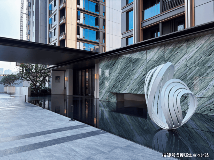 兴耀一直在做全球集采的酒店美学,青森同样延续了这种做法。可以看到楼盘入口处宽约113米的酒店式门头,搭配香格里拉奢石与贝金米黄石材,隐奢感十足。