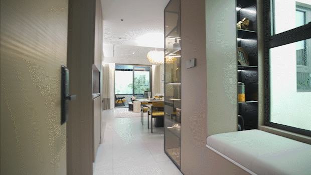进门玄关处的换鞋凳区域设有采光设计,细节之处尽显匠心。LDBK一体化社交空间,将厨房与餐厅自然衔接,不仅优化了烹饪与用餐的动线,更从视觉上放大了客餐厅的尺度感。