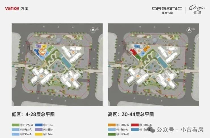 3栋高低区设计,其中低区为4-28层,户型包括74-85-96-115-129㎡。