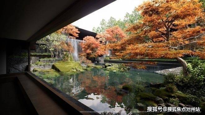 引水入园,以水指引归家的方向,遵循家族大家传统的坊巷肌理,从城市到社区,形成层层递进的归家序列,并藉由池、泉、瀑、溪、涧的多重形态,呈现出“一池三涌、凤栖九逸”的隐逸游园谧境。
