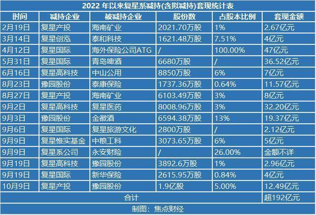 如果出售南钢属实,有望将成为复星年内密集变现中较大的一笔。据焦点财经不完全统计,今年以来,“复星系”先后减持超14家上市公司股份,累计套现超192亿元;如果150亿出售成真,套现金额将超342亿元。