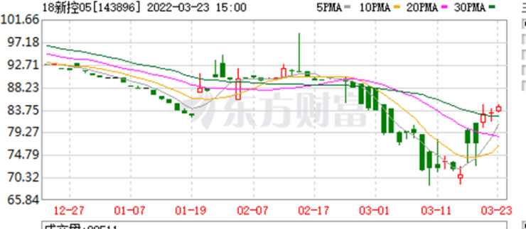 3月以来,新城控股股价不断下探,历经3月9日、3月15日两个跌停,其股价一度跌至20元附近。与此同时,新城控股旗下公司债“18新控05”、“20新控03”从90元附近一路跌至70元、80元附近。