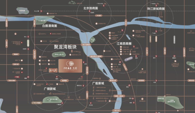 从地理位置来看,保利越秀·天启占据着得天独厚的优势。项目雄踞广钢新城、广船新城、白鹅潭商务区与聚龙湾城市更新单元的核心交汇之处,处于广州西翼CBD中轴 。而其所处的聚龙湾片区,更是意义非凡,它是政府与珠实联合打造的具备岭南特色的产城融合基地,承载着广州西经济文化复兴与崛起的重大使命 。值得一提的是,商业巨头太古已抢先进驻,在此建造中国第四座“太古里”,未来这里的商业繁华指日可待 。