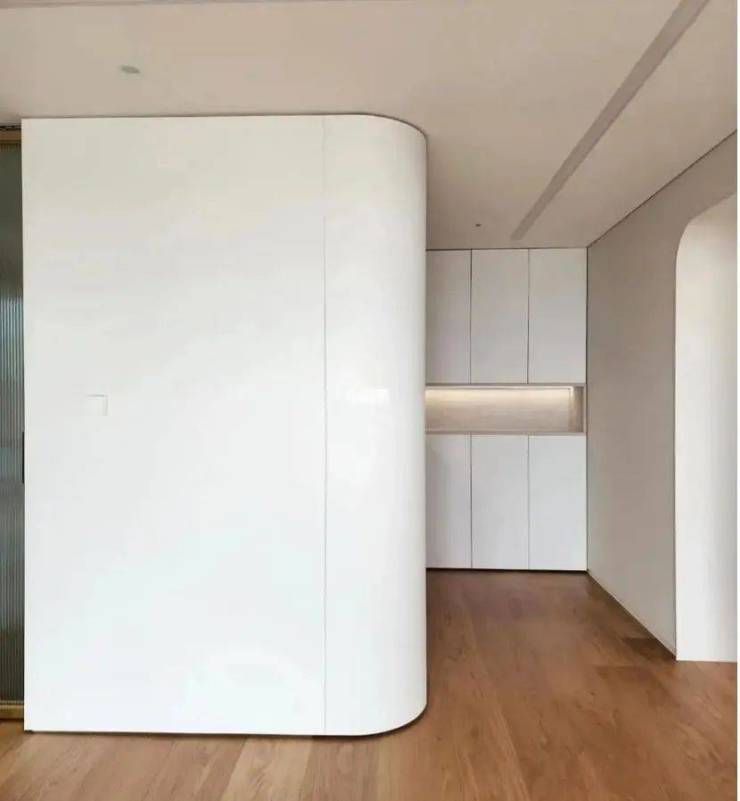 想用好弧形元素,一定得先清楚弧形元素能够给空间带来哪些作用和效果。弧形元素可以柔化尖锐感,凸显温柔感。传统的墙体、门洞或是一些造型,基本都是棱角分明,方方正正的状态。过多的棱角感给人一种生硬晦涩的视觉刺激,而弧形能柔化尖角来带的刺激感。