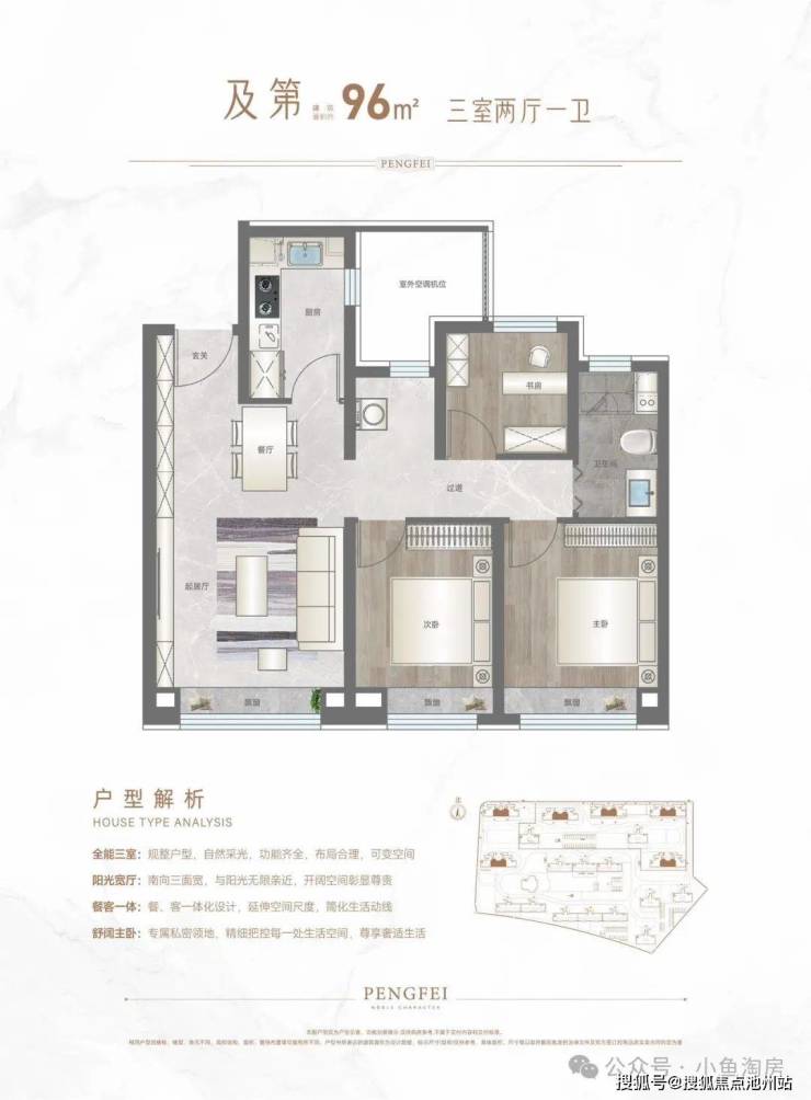 高层9⃣6⃣㎡: 259万起 中户全明双卫三居