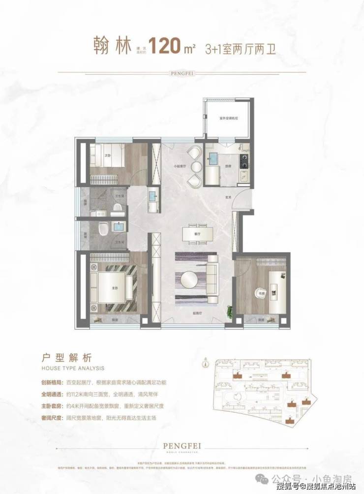 小高1⃣2⃣0⃣㎡: 360万起 边户双卫三➕一居