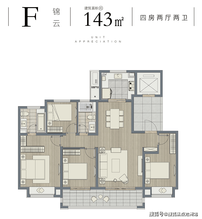 约3.6m大面宽主卧采用套房设计,私密性强,带飘窗和独立卫生间,奢适度满分,同时让空间拥有了更高的拓展性!