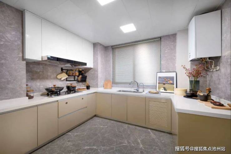 厨房是人性化的U型设计,面积属实不小,切菜-下锅-翻炒,一气呵成,让你在这方小天地游刃有余。