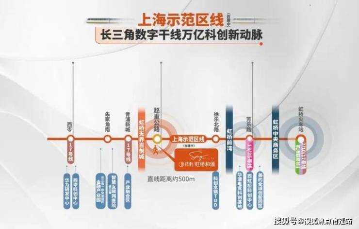 《上海发布》最新公布的相关信息,长三角生态绿色一体化发展示范区门户线,亦是大虹桥科创产业核心骨干线——示范区线预计将于2026年竣工,直线距离赵重公路站仅约500米的保利虹桥和颂,2站前湾、3站虹桥枢纽、5站华为基地,比肩地铁2号线能级,接近地铁两倍时速,一线串联多个高能级科创产业高地,大虹桥、长三角一体化示范区等城市重要发展节点,未来超越想象。