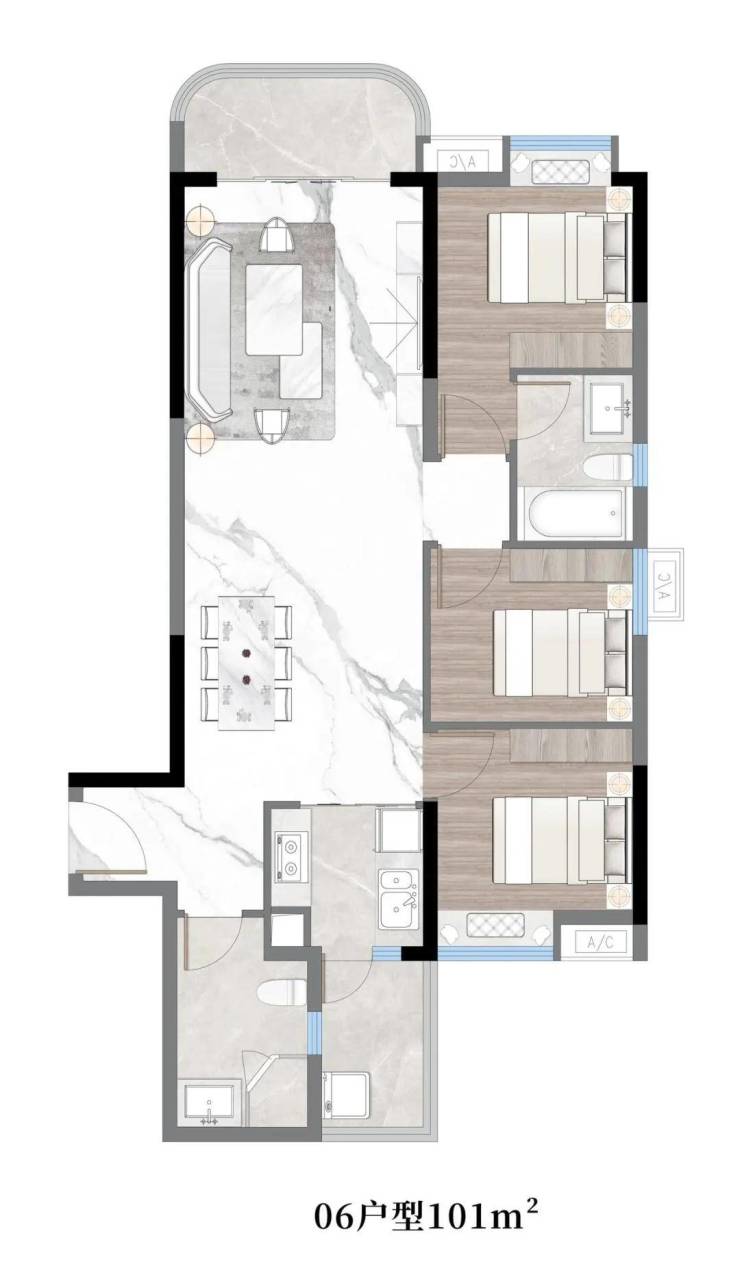 对比目前很多实用率超100%甚至110%的楼盘,致景轩产品略微过时,整体实用率仅约8成。