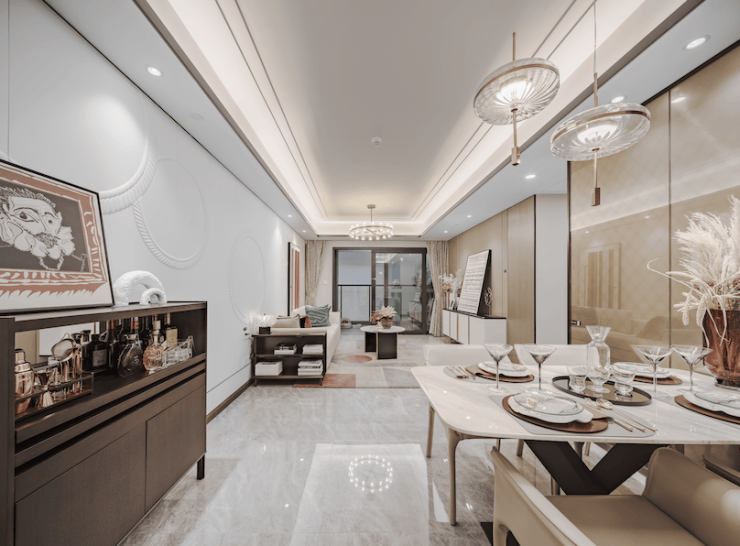 增加了全屋中央空调,客厅配有岩板面板金属包边背景墙头排江景-115方