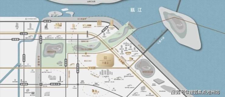 城市阳台、八大银行总部、体育休闲公园、金融双子楼、温州市民中心、吾悦广场、CBD中心绿轴、香格里拉大酒店、瓯江之星、汤臣一品国际宴会中心、蒲鞋市小学分校、温州国际会展中心、鹿角湾、温州市政府、杨府山公园、滨江万象城