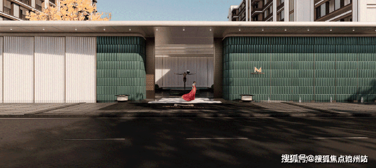 从远看似官帽的楼顶塔冠、M系门把手,以贝金米石材为基地,无处不在的M标识,满系灵魂中的轻奢、定制化深深融入建筑肌理
