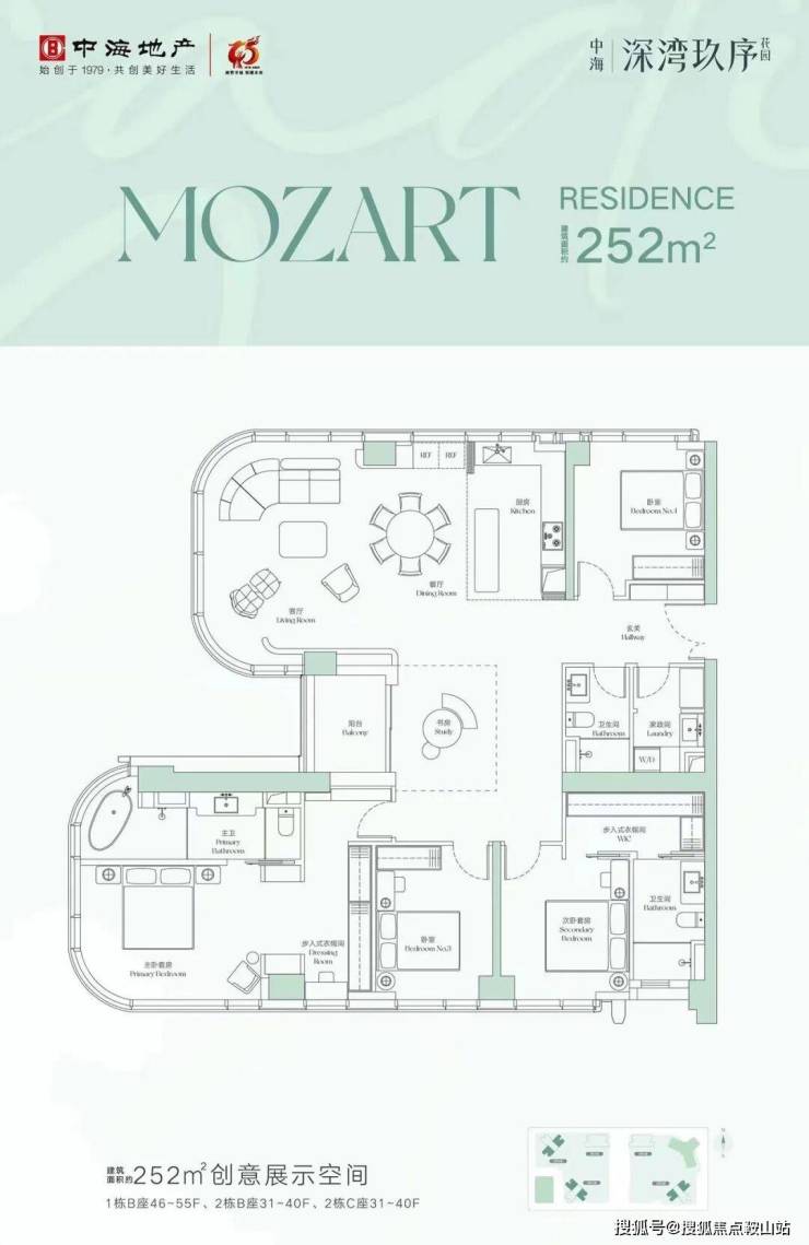 总楼层:1A栋41层;2A、2B、2C栋42层;1B栋59层;1C栋自持租赁54层;幼儿园4层。
