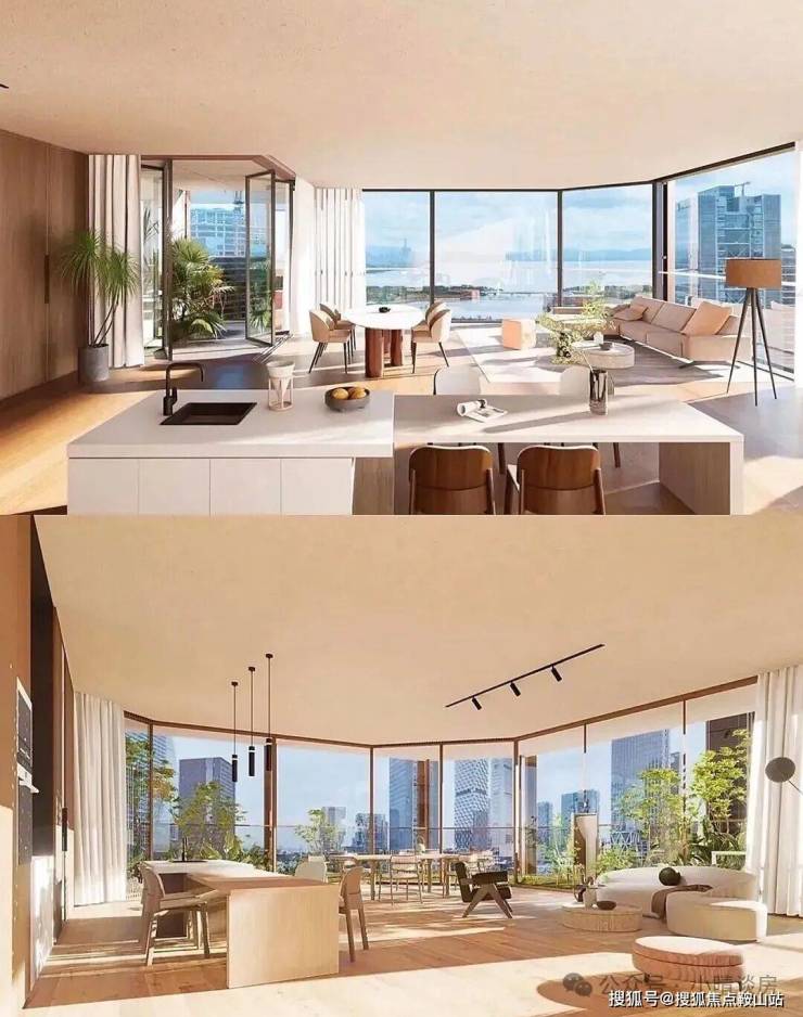 户型改得更实用了,原来主力户型是200㎡起,现在改成209-1050㎡,加了209㎡四房和370-403㎡“4+1房”,不管是三口之家还是多代同住都够住。最惊喜的是实用率——居然有92%以上!新规后很少见,部分户型是客餐厨阳台打通的设计,还有270°环幕阳台,采光和看海视野绝了。