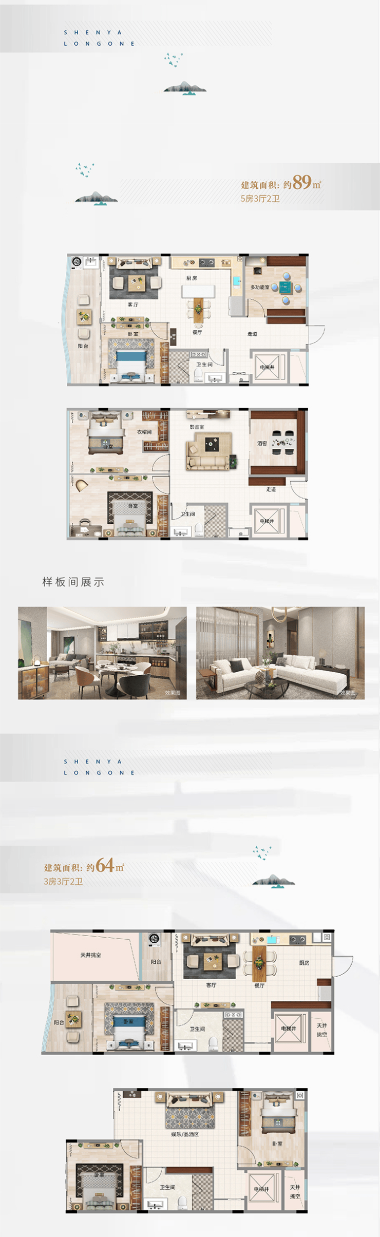 公寓:如 91# 观山寓,85㎡ 2 室 2 厅 1 卫 1 阳台,2 梯 9 户,装修标准 4500 元 /㎡,总层 6 层,一楼赠送一层(地上大落地窗);98# 克拉 LOFT,36㎡ 1 室 2 厅 1 卫,买一层赠一层,总层 4 层,层高 4.5 米,装修标准 4000 元 /㎡。