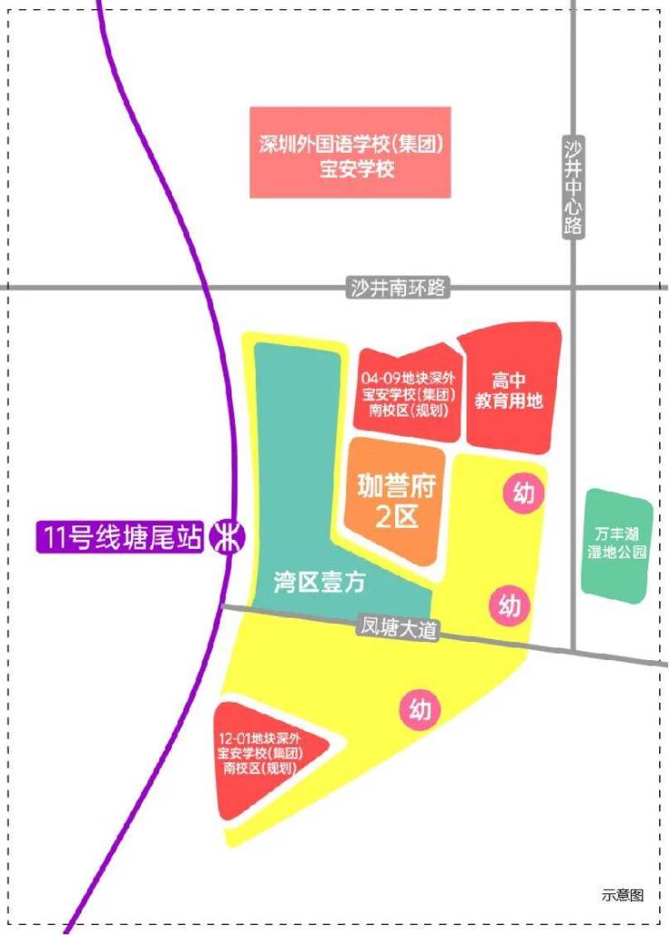 小区自带幼儿园,项目周边两所“深圳外国语学校”(宝安校区、南校区)。