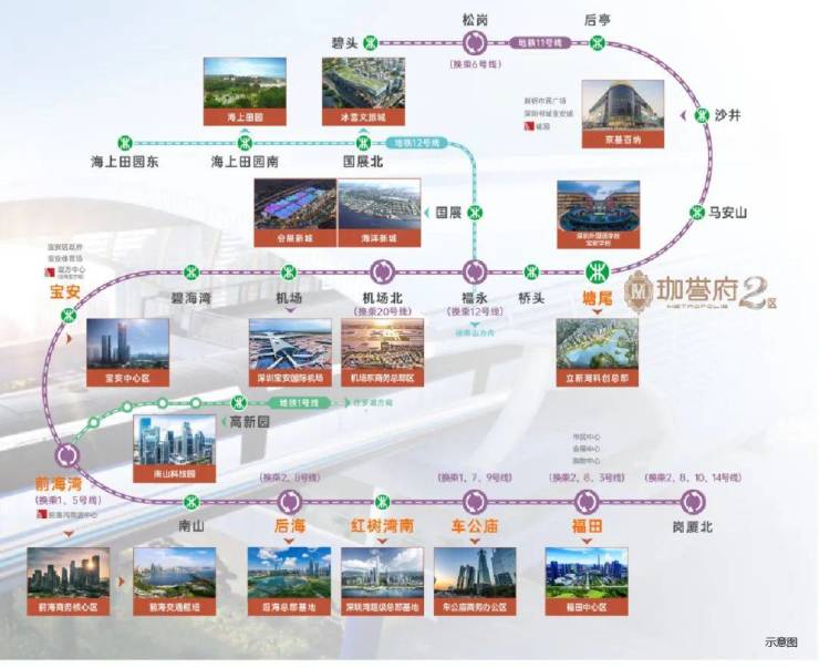 地铁:无缝连接11号线塘尾站,6站到宝中、7站到前海、9站到后海、11站到车公庙,便捷到达南山、福田