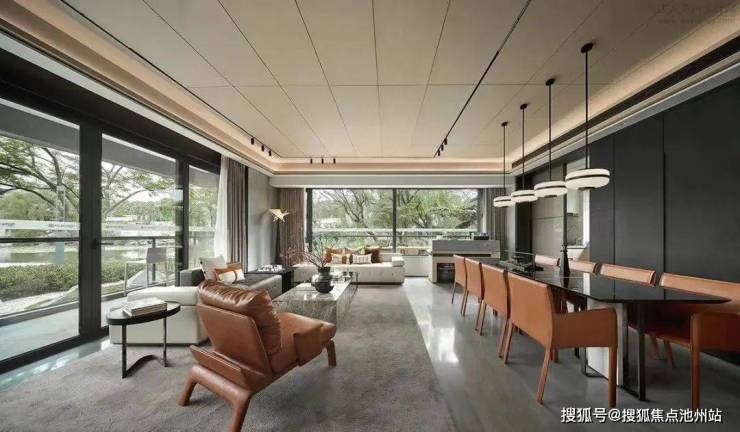 约47.6㎡边厅,堪比300㎡豪宅产品的配置。得益于边厅设计,建筑外侧打造约9米挑高观景露台,与边厅连接成内外相接的景观面。