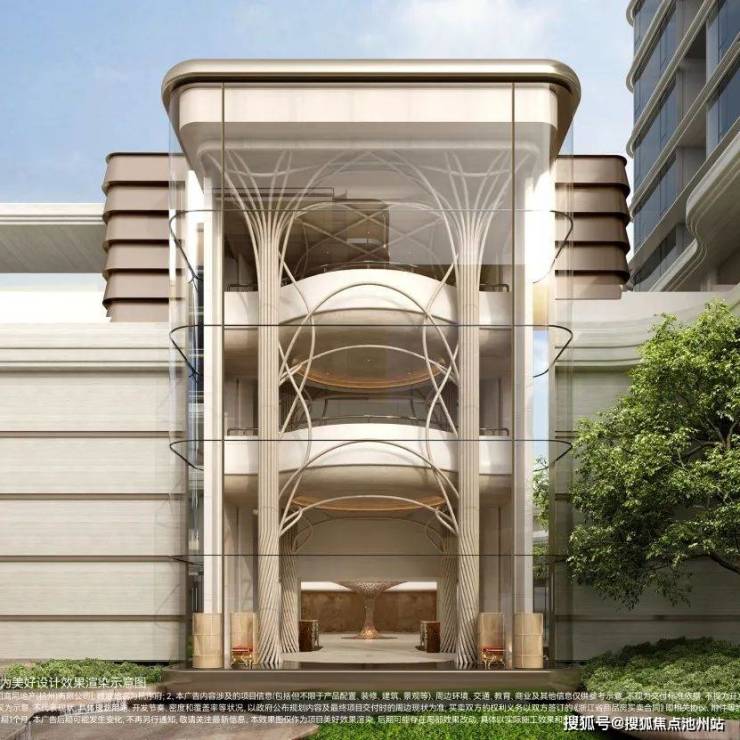 建筑设计团队为绿城GAD,外立面以“站立的江潮”为核心灵感,采用不对称的设计手法,精选白世茂石材+玻璃+铝板为主体,将钱塘江潮的千钧之力和流水之韵凝练于建筑肌理之中,打造出兼具国际审美与东方寓意的城市封面。