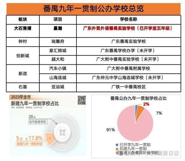 番禺目前193所公办义务教育阶段的学校中,九年一贯制占比仅约7.25%
