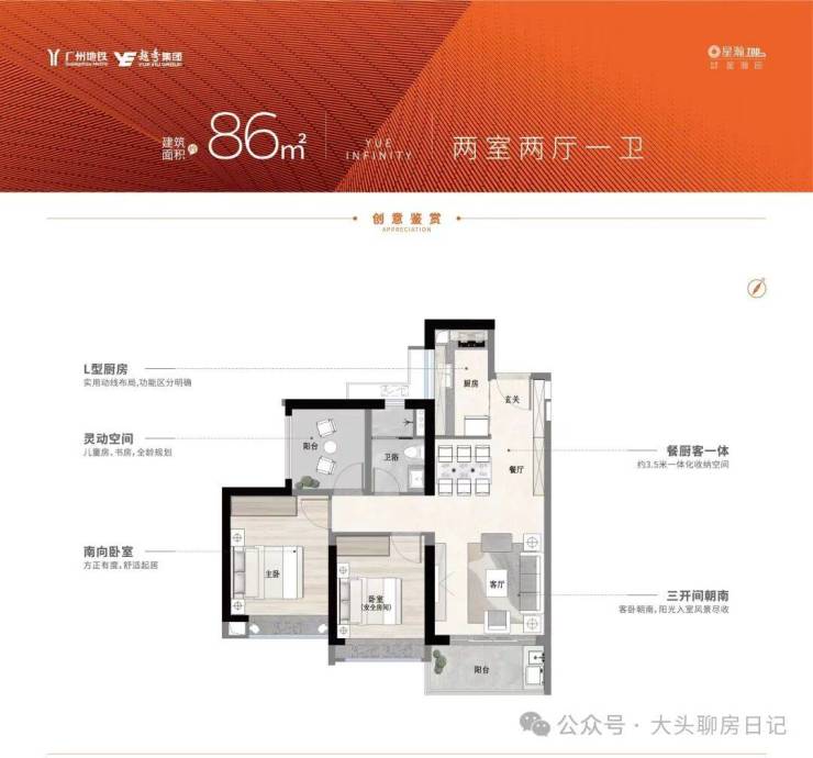 【超宽楼间距 86㎡南向三房 300万起】