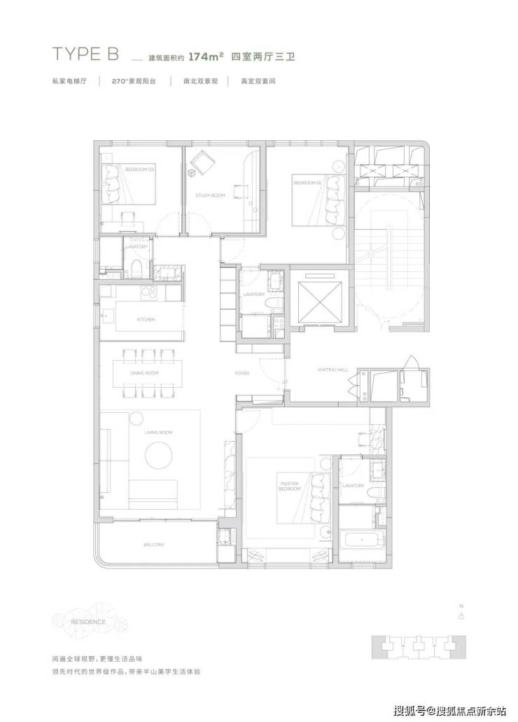 观景双阳台-高定双套间-私家电梯厅-双洄游动线