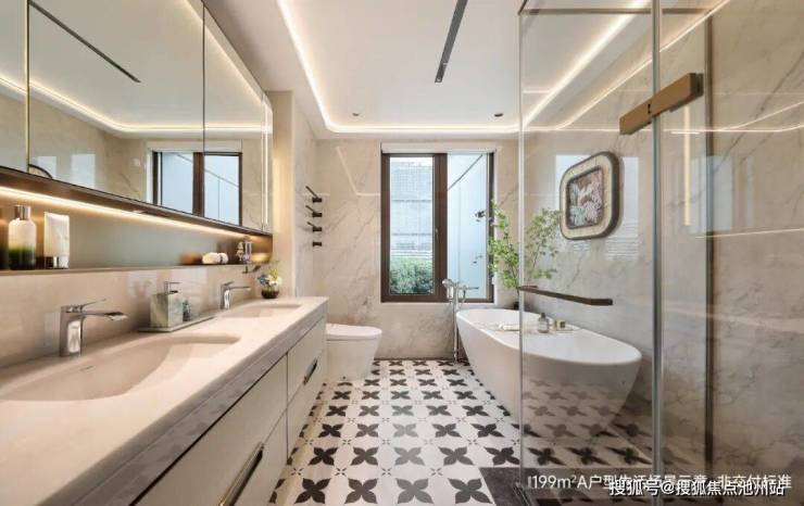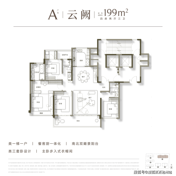 即将首开的建面约199㎡A户型,做到了类一梯一户设计,让公区私有化,出电梯就是私人空间,让您的家人和客人都感到尊贵仪式。