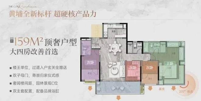建面158平,五开间朝南,约17米南向采光面,约7.7米宽景阳台而且该户型位于项目C位视野非常好。