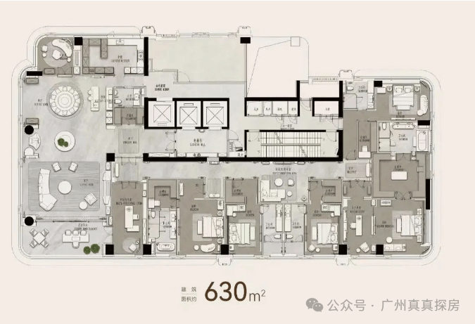 5.保利作为头部开发商,打造全新高端产品系,采用公建化立面、铝板线条装饰等设计,园林、物业均按超高标准打造,与汇悦台、广粤尊府等顶级豪宅形成竞争,定位为广州新一代封面性豪宅。