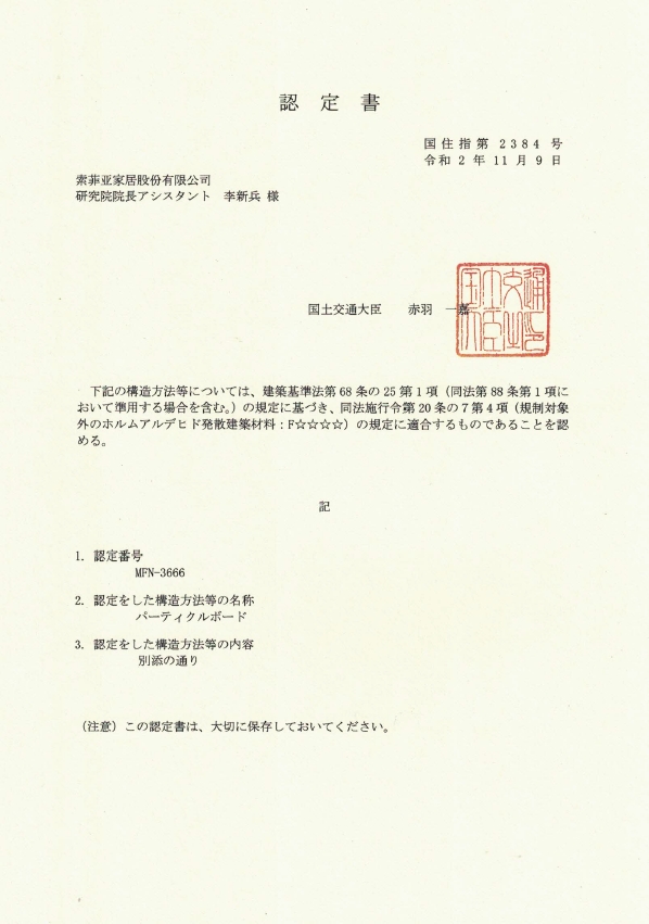 索菲亚康纯板荣膺日本F4星认证,品牌环保新里程碑诞生!