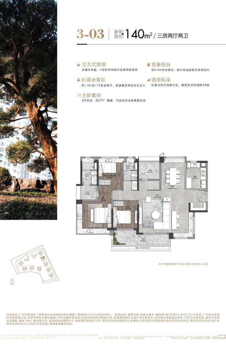 【IMAX尺度阳台】约8.9m观景阳台,中轴岭南式园林景观
