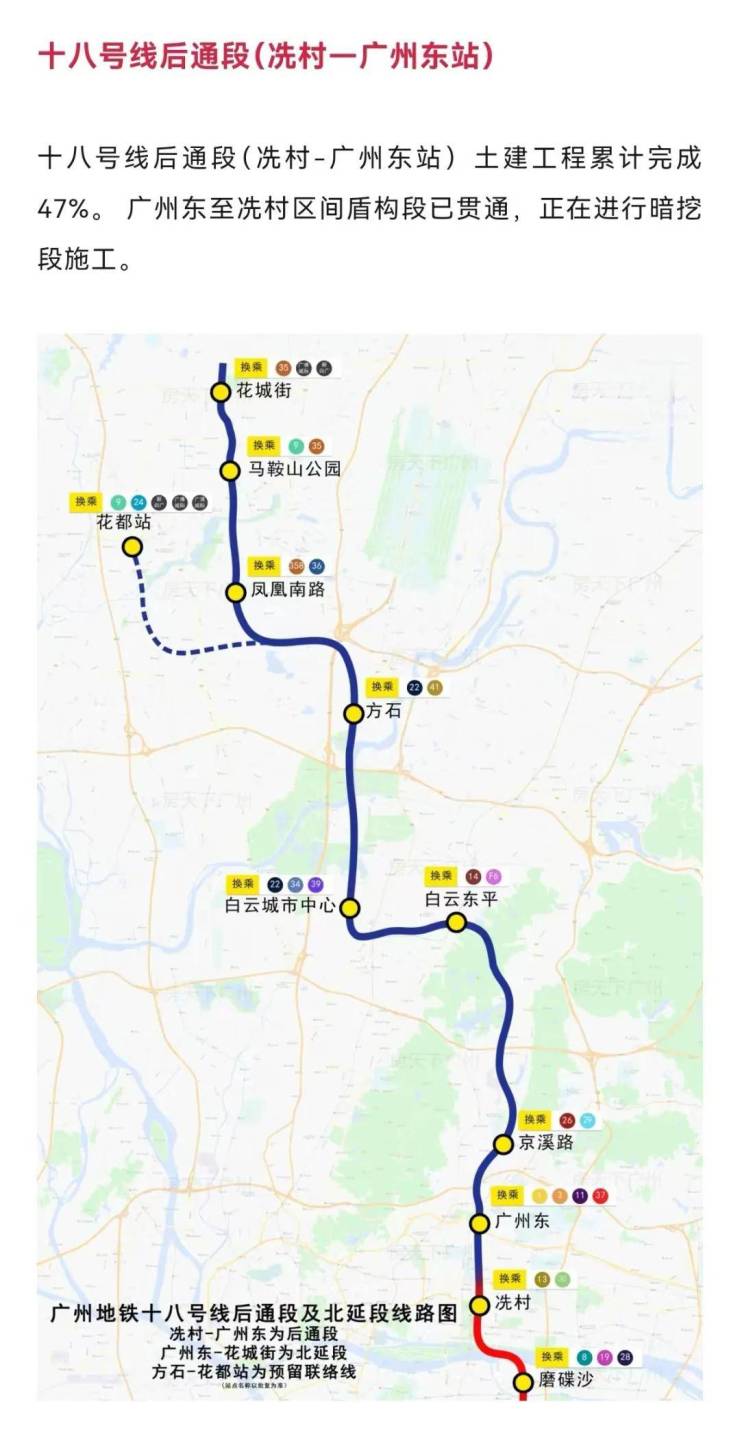 广佛环线(目前全线工程累计完成93%,预计2024年通车)3站天河智慧城,5站到琶洲;
