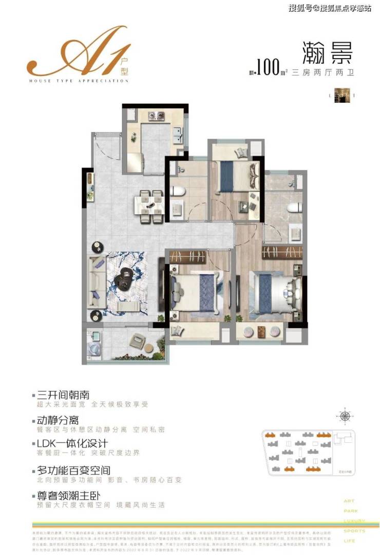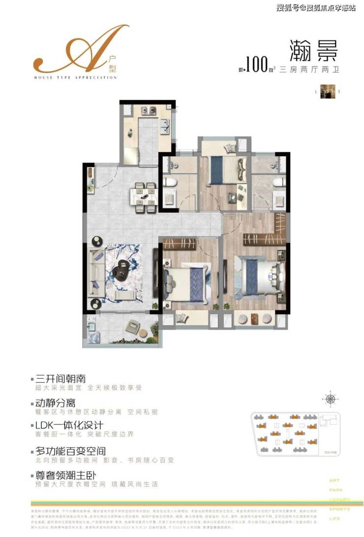 项目约100㎡3房2卫的户型把实用性做到了极致,总价虽低,但能满足业主从二人世界到二胎生活的全生命周期需求。